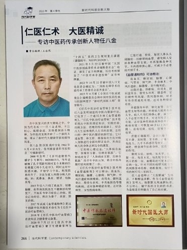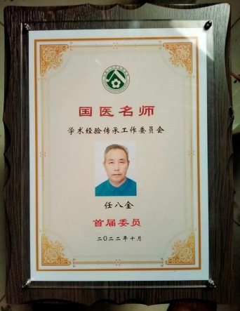 2021年3月22日《任氏中医治疗血管病》技术被中国“大囯中医原创成果传承录编辑委员会”收录,颁发了证书和牌匾,后经考核给任八金颁发了“中医传承非遗技师”证书和牌匾。