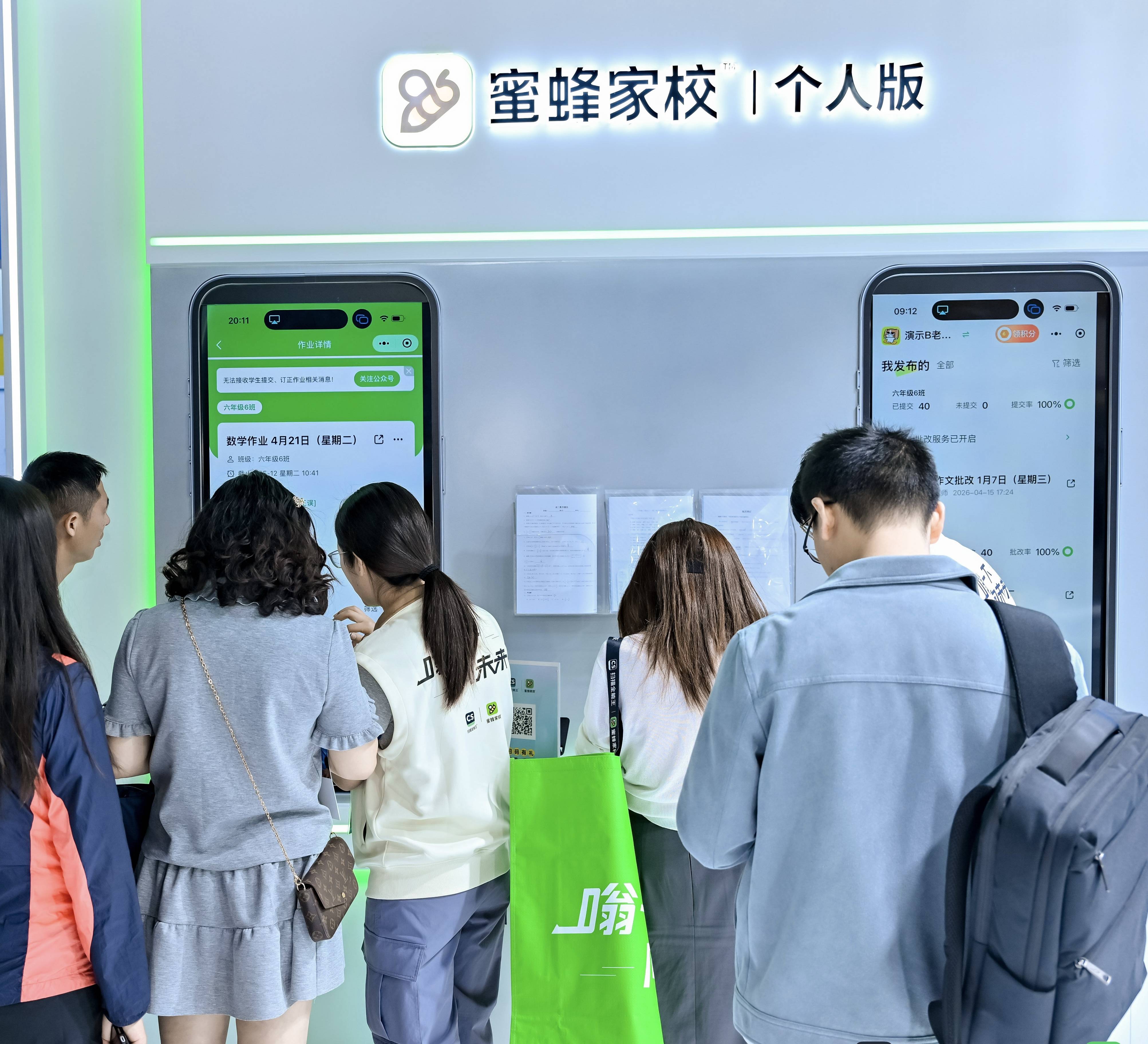 图说:现场观众体验蜜蜂家校小程序作业批改功能
